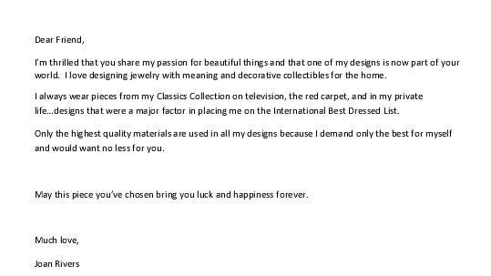 ADDITIONAL INFORMATION ABOUT THE DESIGNER: Joan Rivers (1933-2014): An unparalleled legend in the entertainment industry, Joan Rivers was more than just a comedian – she was a force of nature. An internationally recognized celebrity, Emmy-award-winning talk-show host, Grammy-award-winning performer, Tony-award-nominated actress, bestselling author, playwright, screenwriter, film director, columnist, lecturer, radio host, jewelry designer, entrepreneur, and the renowned creator of the modern-day “red carpet,” Joan was also the first woman to break the glass ceiling of male-hosted late-night television.