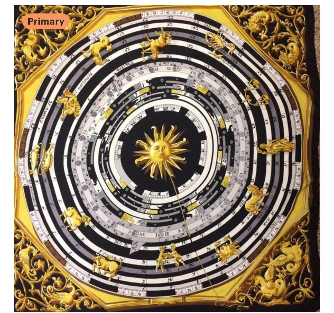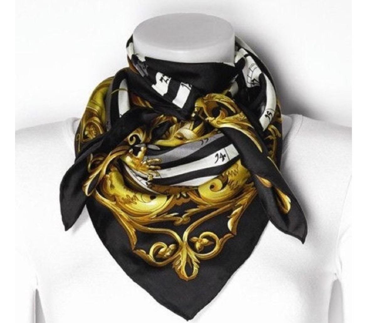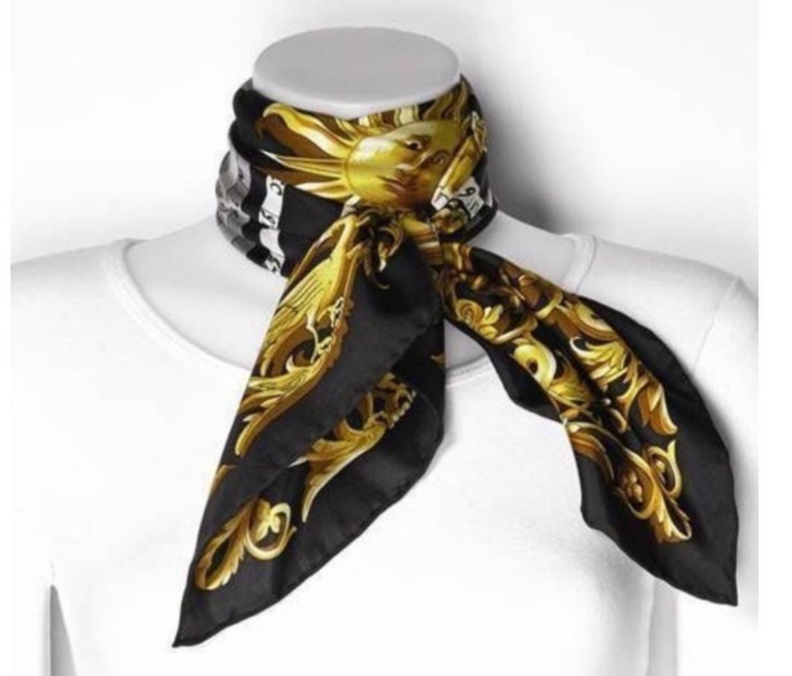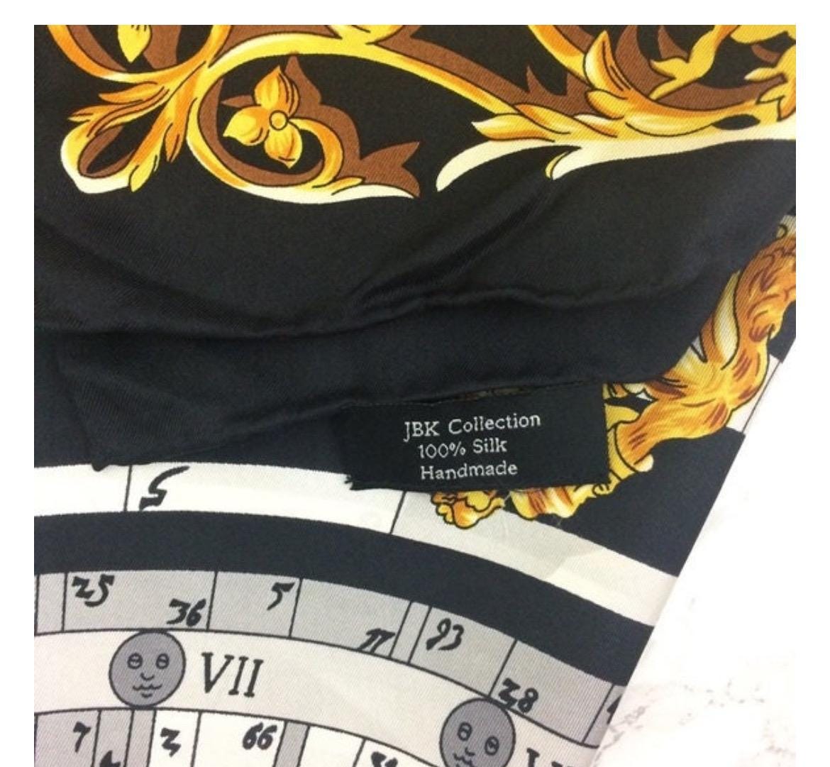 This beautiful scarf is from the Jacqueline Kennedy Collection by Camrose & Kross. It is a replica of Jackie's black and gold Zodiac / Sundial Scarf which had a 400 year-old design from Louis XIV era in France. This scarf is 100% silk and has hand-rolled edges. Its retail price when it was first released was $75.00. It comes with a Certificate of Authenticity and as well as an instruction sheet which shows different ways to wear it. This item is perfect for a birthday gift for woman or for you to wear every day. Shop Now!
