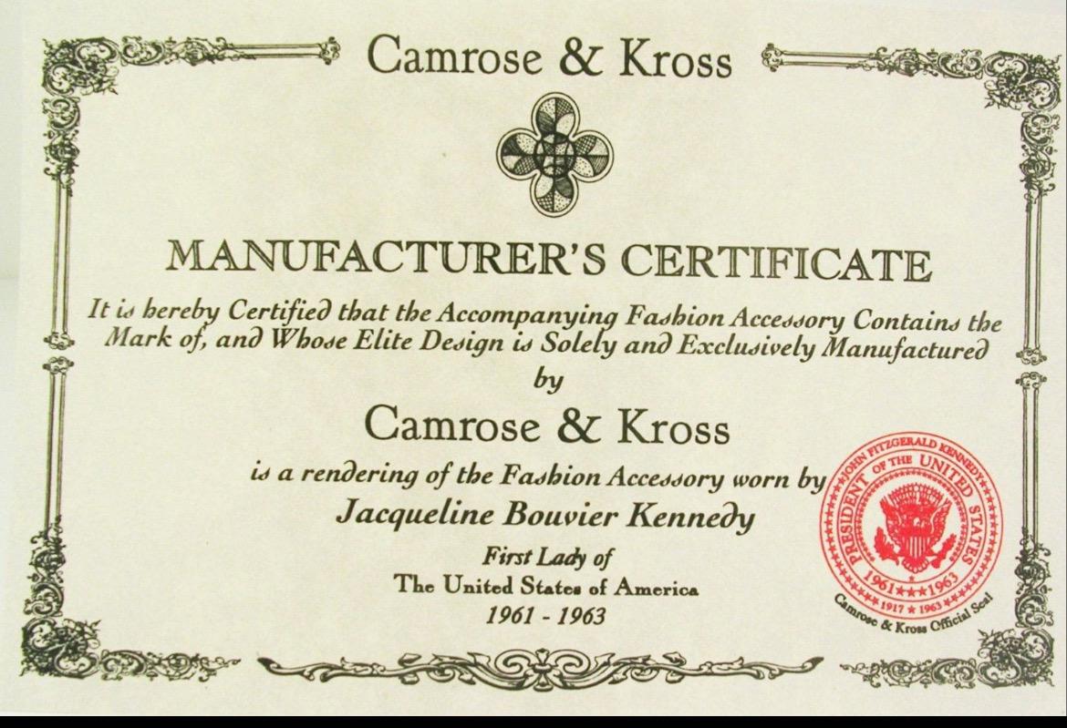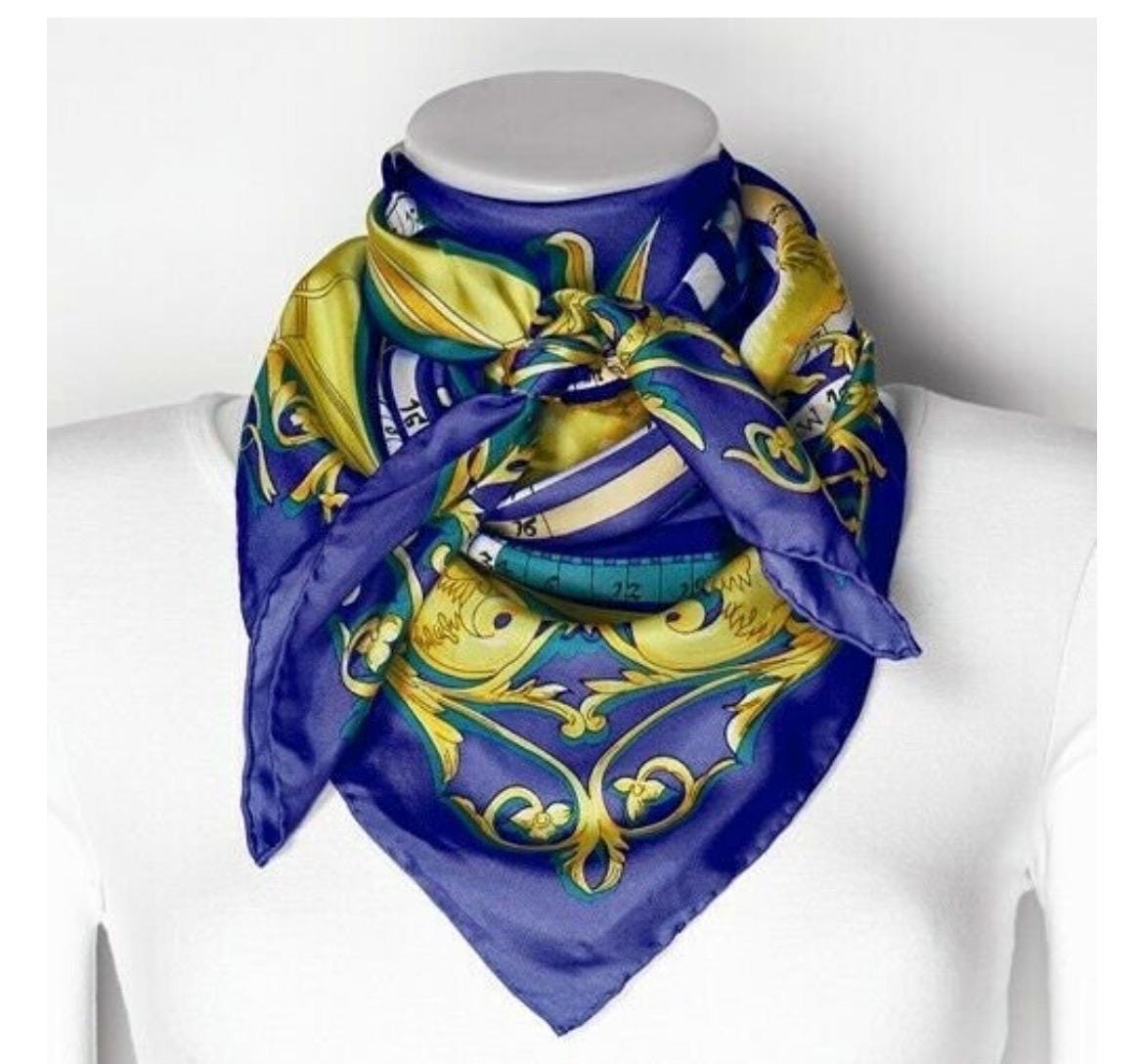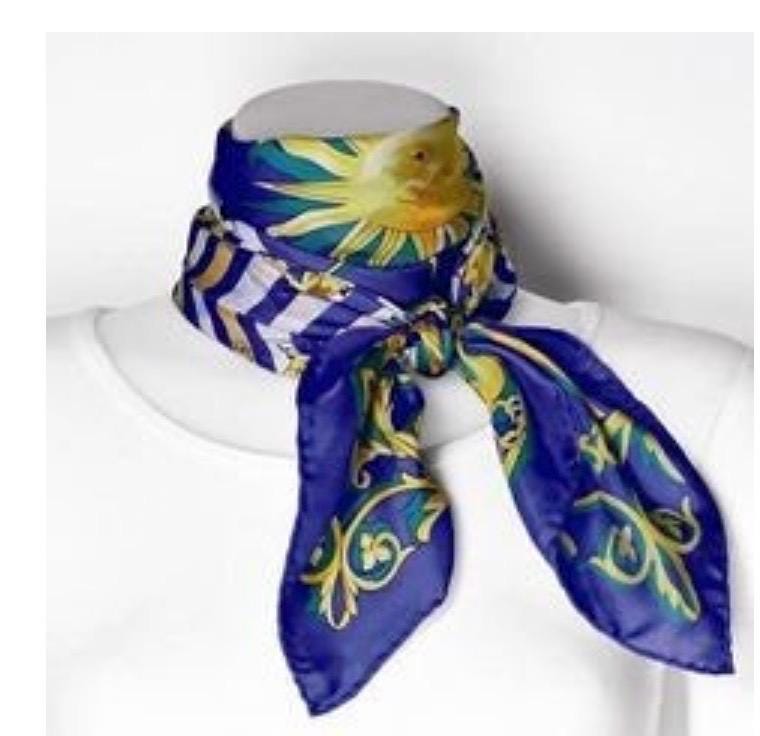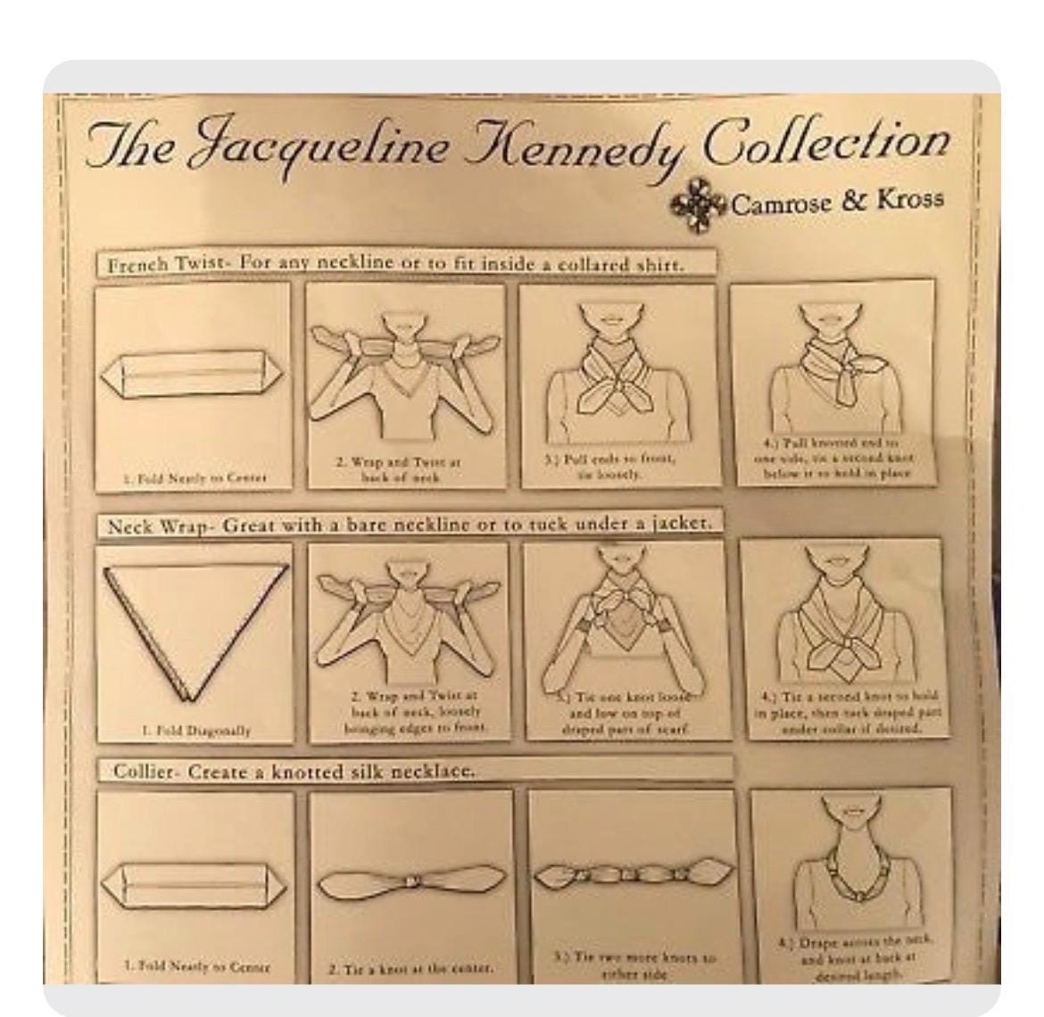 This beautiful scarf is from the Jacqueline Kennedy Collection by Camrose & Kross. It is a replica of Jackie's blue and gold Zodiac / Sundial Scarf which had a 400 year-old design from Louis XIV era in France. This scarf is 100% silk and has hand-rolled edges. Its retail price when it was first released was $75.00. It comes with a Certificate of Authenticity and as well as an instruction sheet which shows different ways to wear it. This item is perfect for a birthday gift for woman or for you to wear every day. Shop Now!