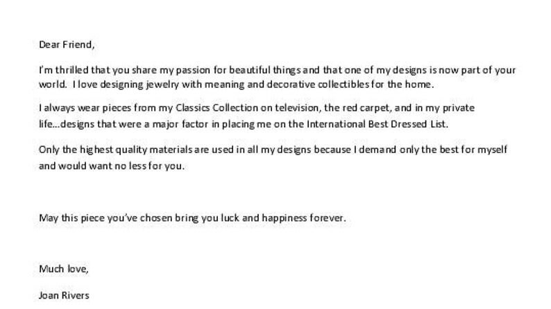 ADDITIONAL INFORMATION ABOUT THE DESIGNER: Joan Rivers (1933-2014): An unparalleled legend in the entertainment industry, Joan Rivers was more than just a comedian – she was a force of nature. An internationally recognized celebrity, Emmy-award-winning talk-show host, Grammy-award-winning performer, Tony-award-nominated actress, bestselling author, playwright, screenwriter, film director, columnist, lecturer, radio host, jewelry designer, entrepreneur, and the renowned creator of the modern day “red carpet,” Joan was also the first woman to break the glass ceiling of male-hosted late-night television.